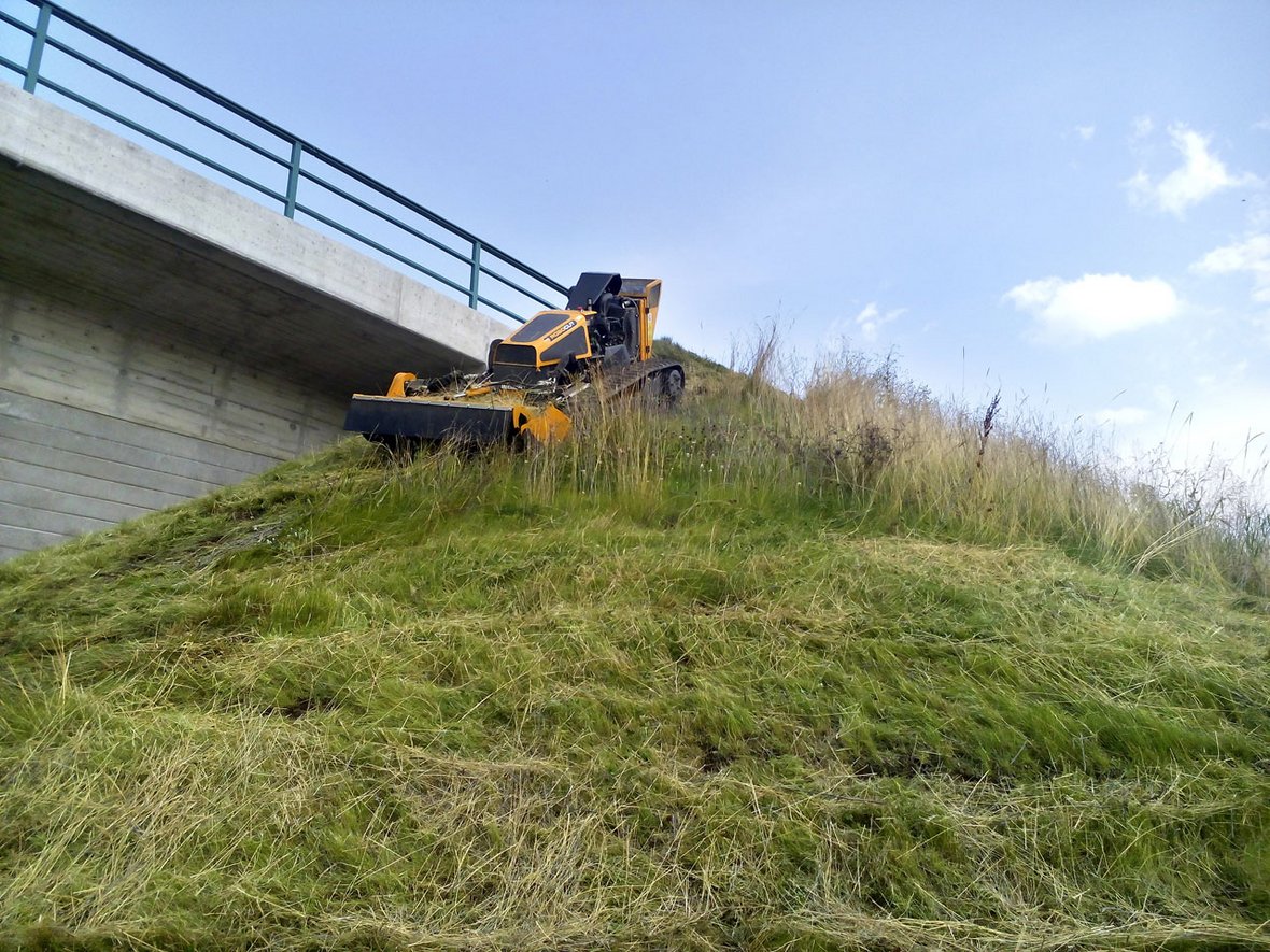 Kompaktowa samojezdna kosiarka gąsienicowa, zakupiona w podkoszalińskiej firmie Agrokom, m.in. reprezentującej na naszym rynku markę McConnel, trafiła do 4timber z myślą o pracy w miejscach, do których dostęp jest utrudniony lub gdy praca może być niebezpieczna. – Przed czterema laty podjęliśmy temat koszenia przy autostradach w Niemczech, a na tamtejszym rynku pracuje sporo maszyn sterowanych radiowo. Zdecydowałem się na Robocuta i szybko się okazało, że pojazd ten bardzo dobrze sprawdza się w trudnym terenie, zwłaszcza na mocno nachylonych zboczach. Wynika to z zastosowanego układu jezdnego i nisko położonego środka ciężkości, zapewniającego znakomitą stabilność. Pojazd ten może z powodzeniem zastąpić ciągnik rolniczy zagregatowany z kosiarką, często pozbawiony możliwości poruszania się w rowach czy rozległych skarpach o dużym nachyleniu, typowych dla sąsiedztwa autostrad – przekonuje Filip Żukowski, właściciel firmy 4timber. – Dużym plusem jest to, że maszyna ta jest bardzo mobilna. Sam Robocut jest stosunkowo lekki - waży 1 tonę, dodatkowe 200 kg - mulczer, dzięki czemu zestaw ten mogę przewozić na zwykłej naczepie ciągniętej przez busa. Przez to koszty transportu nie są zbyt wysokie – dodaje.