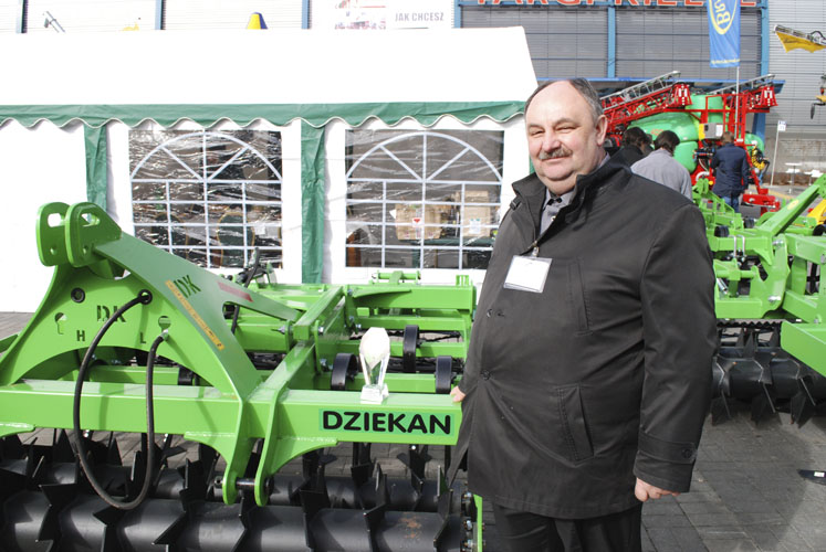 Producent podczas targów pokazał m.in. agregat uprawowo-siewny Mamut, który jest przystosowany do pracy na różnych rodzajach gleb łącznie z ciężkimi, nawet jeśli są wyschnięte. Mamut sprawdza się też jako samodzielny agregat uprawowy i ścierniskowy. – Maszyna została wyposażona w hydropak. Umożliwia on, dzięki odpowiednim zmianom konstrukcyjnym, przesunięcie siewnika aż o 1,65 m do przodu, gdzie w tradycyjnych rozwiązaniach jest to maksymalnie 1 m. Dzięki temu, ciągniki o mniejszym udźwigu bez problemu poradzą sobie z agregatem i siewnikiem jednocześnie –mówi Krzysztof Dziekan, właściciel firmy Dziekan.