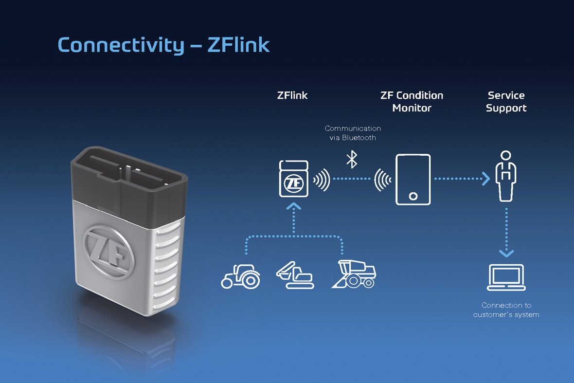 W kwestii łączności ZF oferuje podstawowy system ZF Link z Bluetooth Low Energy (BLE) i dedykowaną aplikacją ZF AgriApp, które łączą ciągnik ze smartfonem lub tabletem poprzez diagnostyczny interfejs OBD2. System umożliwia bieżące odczytywanie i analizę danych pojazdu, warunków pracy oraz niezbędnych danych serwisowych. W przypadku występowania kodów błędów system proponuje albo samodzielne rozwiązanie problemu, albo przesyła odpowiednie informacje do punktu serwisowego. Dostępny dla użytkowników jest także system łączności „premium” poprzez otwartą platformę ZF IoT. Zapewnia ona nowe usługi cyfrowe i efektywniejsze korzystanie z zasobów sprzętowych dzięki analizie danych i stosowaniu inteligentnych algorytmów. Sprzęt ZF umożliwia także opcję płynnej identyfikacji i śledzenia pracy i stanu technicznego maszyn poprzez znaczniki DeTAGtive. Stosowane znaczniki mają zasięg do 70 m, a do przesyłania informacji używają technologii Bluetooth.