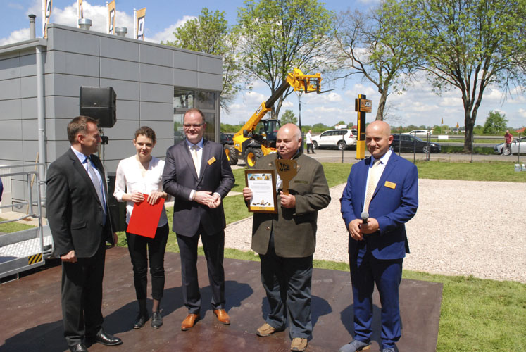 Na otwarciu nowego oddziału pojawili się również przedstawiciele największego klienta firmy Interhandler w sektorze rolniczym - Kombinatu Rolnego Kietrz, gdzie na powierzchni ponad 10 tys. ha pracują 24 maszyny z logo JCB, w tym 12 ciągników Fastrac. Złoty klucz z rąk Andrzeja Kaźmierskiego, odpowiedzialnego w firmie Interhandler za dział rolniczy, odebrał dyrektor Kombinatu Rolnego Kietrz - Wojciech Kwaśnik.