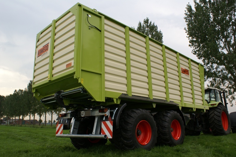 Przyczepy objętościowe Kaweco Radium są standardowo wyposażone w dyszel zawieszony za pomocą mieszków gumowych. Modele 45, 50 i 55 mogą być również wyposażone w dyszel z zawieszeniem hydraulicznym, co w przypadku Radium 60 jest standardowym rozwiązaniem. Holenderskie prawo wymaga transportowania materiałów pod solidnym przykryciem, szczególnie w przypadku gdy transportuje się poszatkowaną kukurydzę czy zielonkę, które mogą zabrudzić drogę. Przyczepy Kaweco wyposażone są w specjalne uchylne pokrywy, które zabezpieczają materiał przed rozsypaniem. Producent zapewnia, że pokrywy są lekkie i elastyczne dzięki czemu nawet nierówny materiał zostanie skutecznie przykryty. Są otwierane i zamykane hydraulicznie.