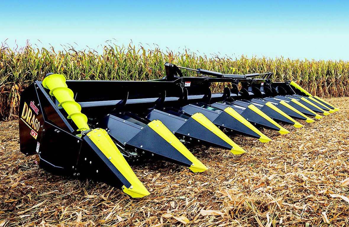 W hederach Drago GT zwracają uwagę opatentowane, zapewniające pełną automatykę zbioru listwy obrywające, z samoczynnie dopasowującą się szczeliną między nimi do grubości łodyg, a także z pionową amortyzacją tłumiącą uderzenia kolb, co przyspiesza zbiór i eliminuje straty ziarna. Straty minimalizują także wałki wciągające, które są o 25% dłuższe niż w większości innych przystawek i dzięki niższej prędkości obwodowej obrywają kolby delikatniej. Małe straty to również efekt niewielkiego kąta pracy niskoprofilowych przystawek GT (18°), a także zastosowania opcjonalnych bocznych i tylnych osłon zapobiegających gubieniu kolb oraz bocznych ślimaków.