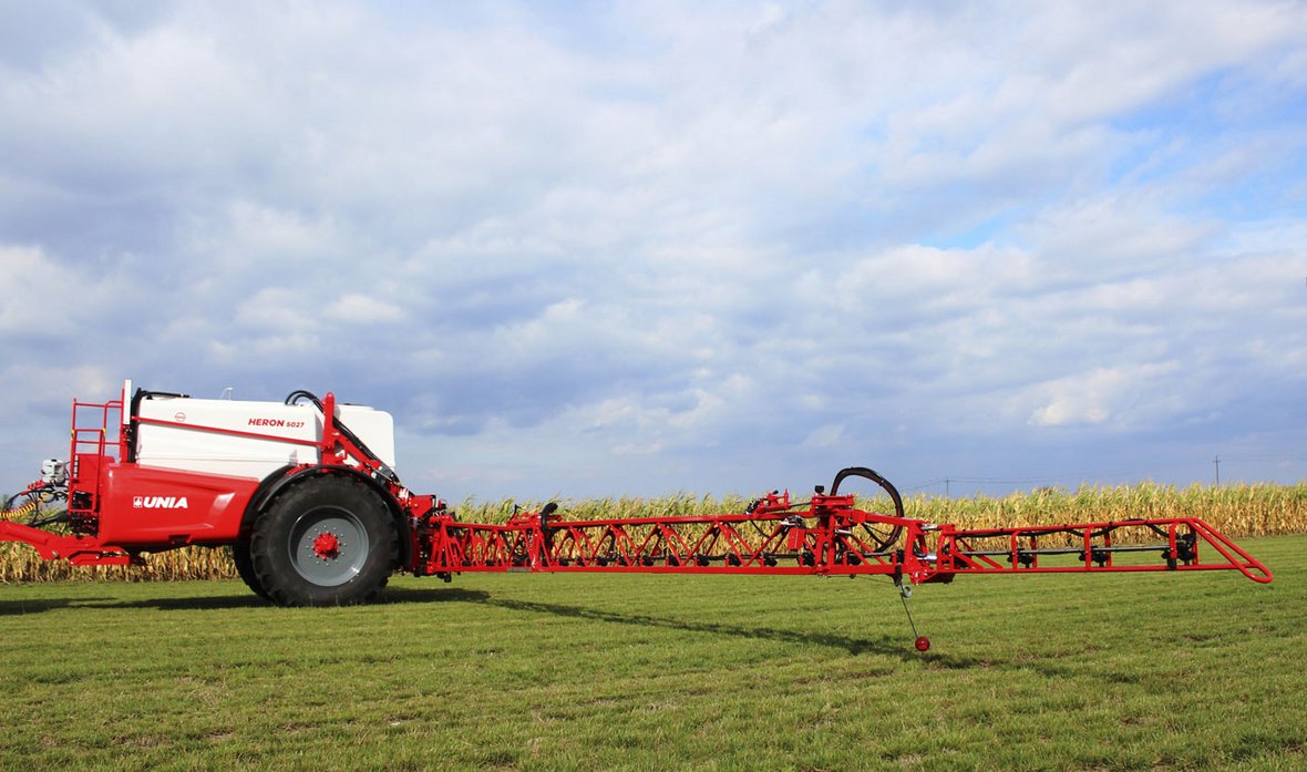 Opryskiwacze Heron mają w standardzie pompę membranowo-tłokową o wydajności 400 l/min, zamontowaną na dyszlu, co zwiększyło prześwit. Za optymalne rozprowadzanie cieczy odpowiada belka polowa o konstrukcji przestrzennej (18, 20, 21, 24, 27, 28 lub 30 m), w której układzie stabilizacji wzmocniono amortyzatory tłumiące ruchy poprzeczne. Oprócz tego dodano sprężyny przyspieszające stabilizowanie belki po wyjściu z zakrętu. Belka jest podnoszona w zakresie od 0,5 do 2,3 m na zmodernizowanym równoległoboku, w którym zlikwidowano dolną poprzeczkę, przez co wzrósł prześwit.