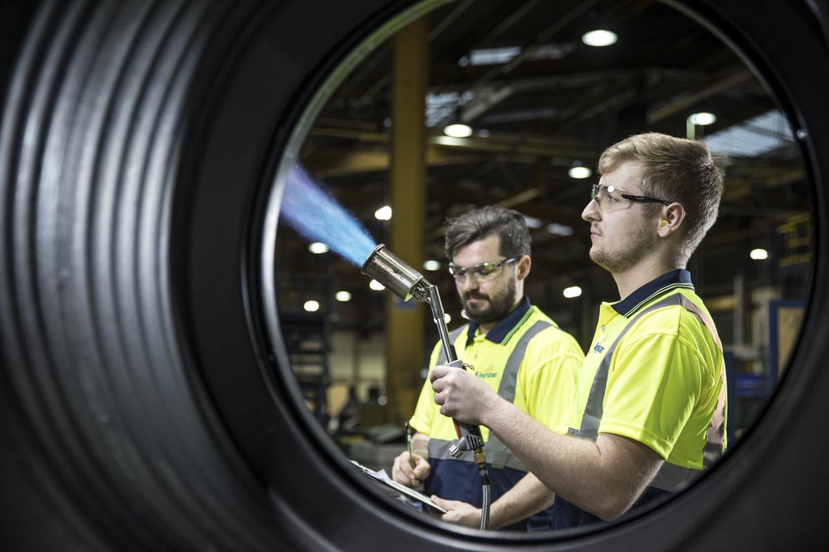 – Produkt po opuszczeniu maszyny musi zostać zważony, stanowi to punkt wyjścia do określenia, czy został odpowiednio wyprodukowany - czy masa zasypu była poprawna, a przebieg procesu pieczenia odbył się w optymalnych warunkach. Poza tym konieczny jest audyt wizualny - czy zbiornik nie ma jakichś odkształceń lub uszkodzeń. Do tego dochodzi test ciśnieniowy zbiornika oraz pomiar grubości ścian zbiornika, będący elementem jego certyfikacji, a także kontrola szczelności wszystkich elementów wtopionych w zbiorniku