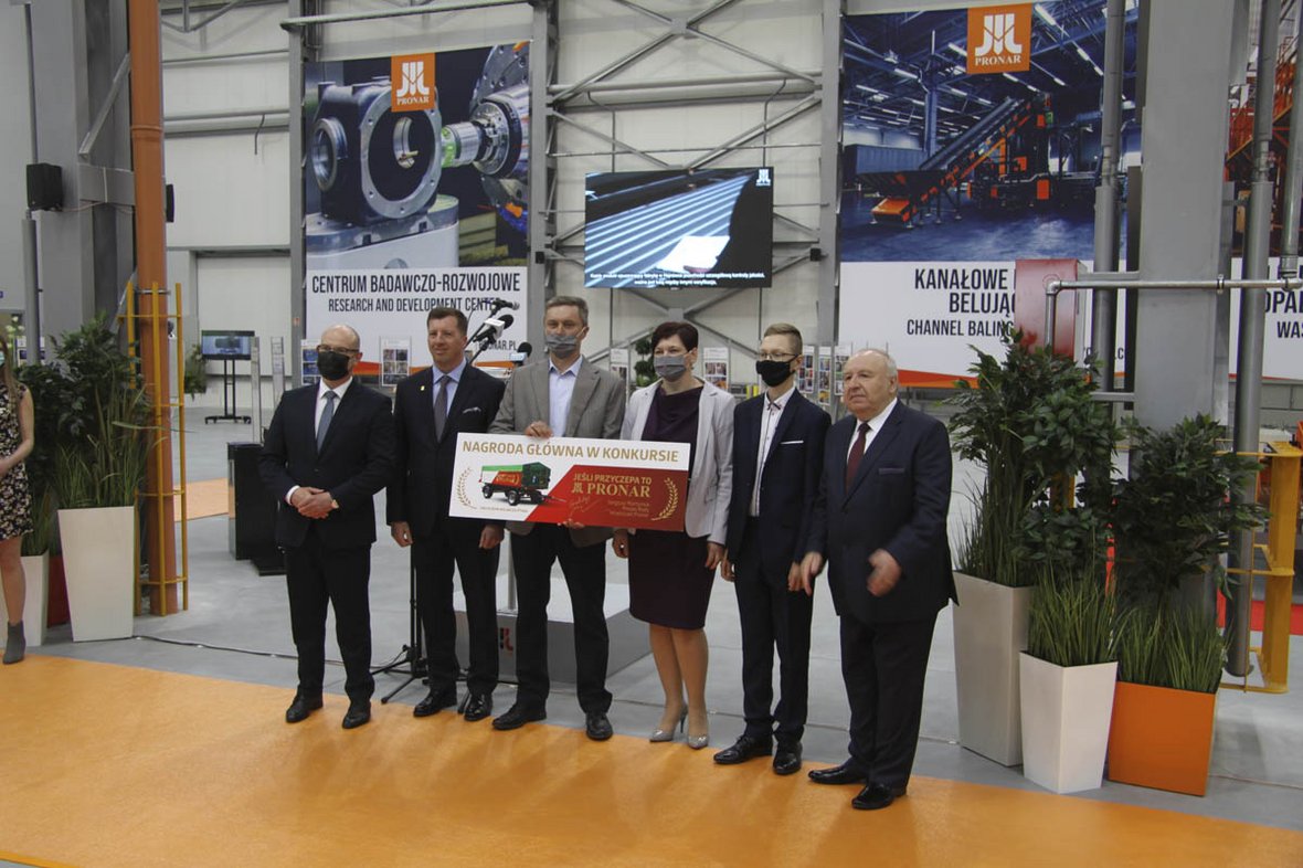 Podczas uroczystego otwarcia Centrum Wystawowego oficjalnie rozstrzygnięto również konkurs „Jeśli przyczepa, to Pronar”. Nagrodę główną - przyczepę rolniczą PT606 - otrzymał Robert Kawęcki z m. Strzakły na Lubelszczyźnie, właściciel gospodarstwa specjalizującego się w ekologicznej hodowli drobiu (w środku).
